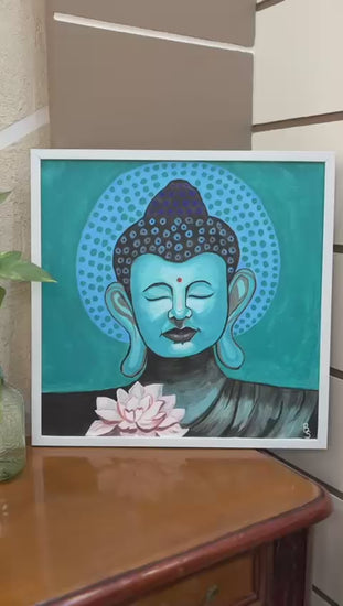 “Serenity in Stillness” - Hand-Painted Buddha Portrait with Lotus